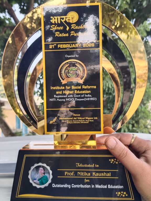 सुभारती विश्वविद्यालय की प्रो. नितिका कौशल को ‘भारत राष्ट्रीय रत्न पुरस्कार – 2026’, मेडिकल एजुकेशन में उत्कृष्ट योगदान हेतु विशेष सम्मान