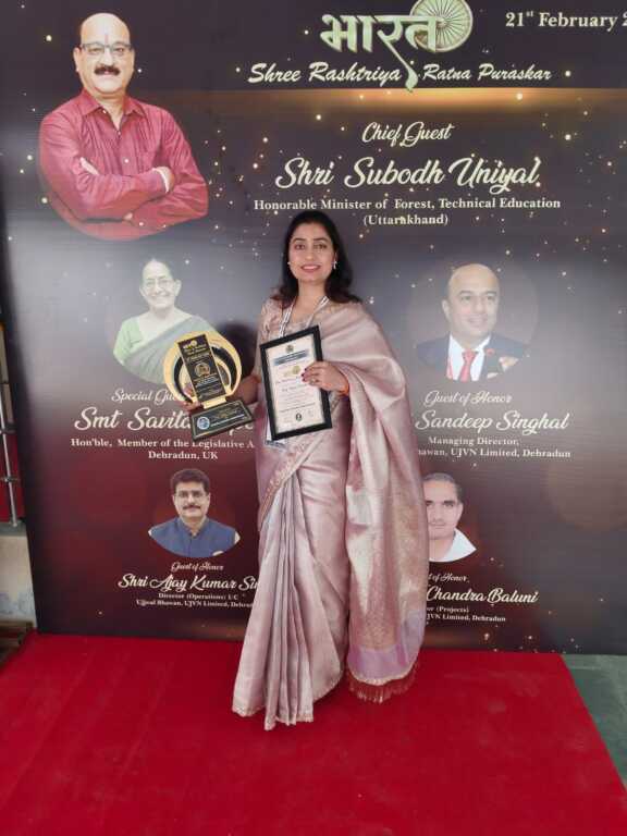 देहरादून, 22 फरवरी 2026। उत्तराखंड के लिए गर्व और प्रेरणा का क्षण तब बना जब Ras Bihari Bose Subharti University से संबद्ध प्रोफेसर एवं डीन स्टूडेंट वेलफेयर प्रो. नितिका कौशल को राष्ट्रीय स्तर पर प्रतिष्ठित ‘भारत राष्ट्रीय रत्न पुरस्कार – 2026’ से अलंकृत किया गया।