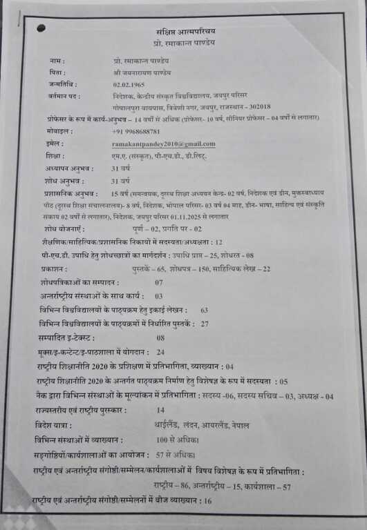 प्रो. पाण्डेय वर्तमान में केन्द्रीय संस्कृत विश्वविद्यालय, जयपुर परिसर (राजस्थान) में निदेशक के पद पर कार्यरत हैं। अब उन्हें उत्तराखंड संस्कृत विवि के नए कुलपति पद पर नियुक्त किया गया है।