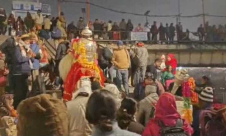 माघ मकर संक्रांति स्नान पर्व की शुरआत घने कोहरे और भयंकर ठंड के बीच हुई। बड़ी संख्या में श्रद्धालु स्नान के लिए पहुंचे। ढोल और दमाऊं की थाप के बीच देव डोलियों को लाया गया। और गंगा में स्नान कराया गया।