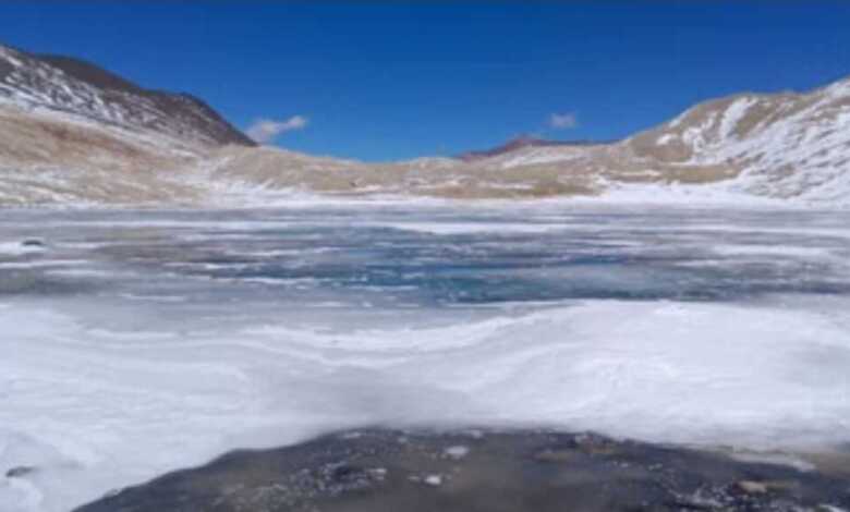 भारत-चीन सीमा क्षेत्र में 18 हजार फीट की ऊंचाई पर स्थित देवताल झील इन दिनों कड़ाके की ठंड के कारण जम गई है। पिछले दिनों ऊंचाई वाले क्षेत्रों में हुई बर्फबारी से तापमान में भारी गिरावट आ गई थी,