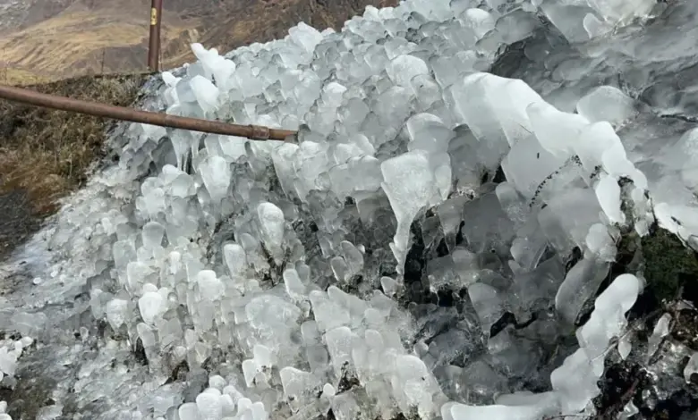 गोपेश्वर। बदरीनाथ धाम में नाले और झरनों का पानी जमने लगा है। बदरीनाथ धाम में कड़ाके की ठंड पड़ने शुरू हो गई है। पाला जमने के साथ पानी भी जमने लगा है। हालांकि यात्रियों में यात्रा को लेकर खासा उत्साह है।