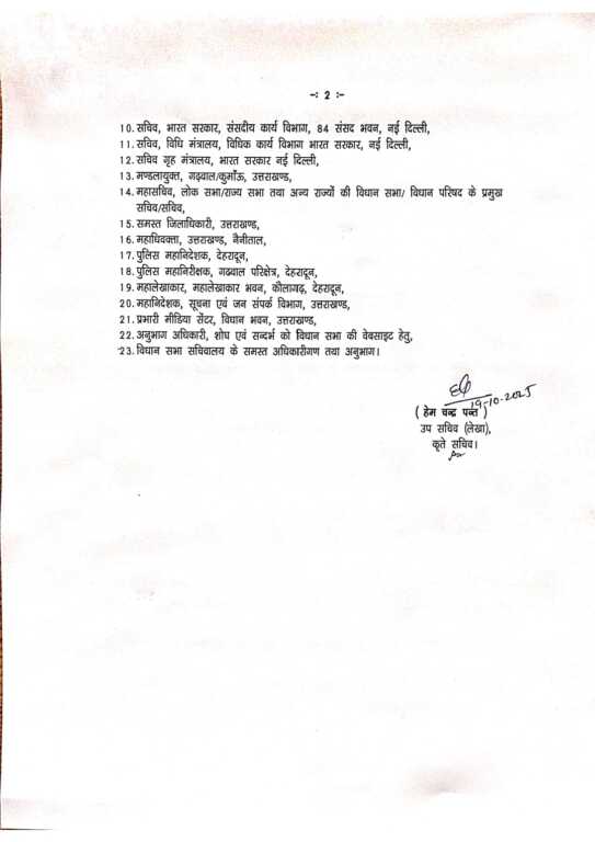 विधानसभा सचिवालय की ओर से यह अधिसूचना उप सचिव (लेखा) हेम चन्द्र पन्त द्वारा हस्ताक्षरित कर जारी की गई है।