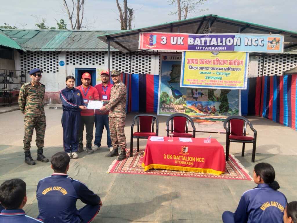 कमान अधिकारी 03 यूके बटालियन एनसीसी, द्वारा सभी प्रशिक्षणार्थी कैडेट्स को प्रमाण पत्र वितरित किए गए। इस अवसर पर कमान अधिकारी द्वारा जिलाधिकारी महोदय एवं अपर जिलाधिकारी महोदय (वि0/रा0), देहरादून का विशेष आभार व्यक्त करते हुये कि इस प्रकार के प्रशिक्षण कार्यक्रम युवाओं में आपदा के प्रति जागरूकता, अनुशासन,