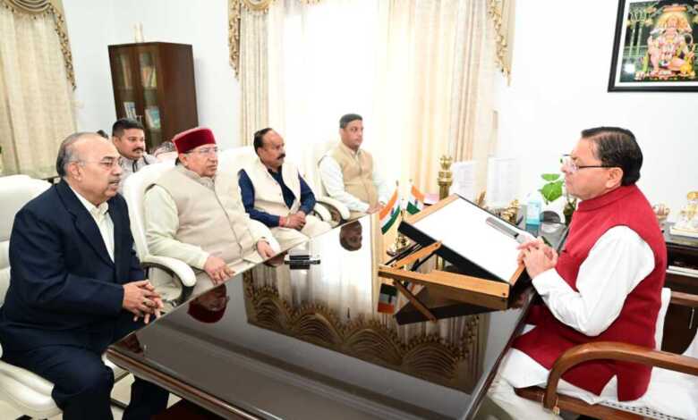 इस दौरान राज्य सभा मुख्यमंत्री पुष्कर सिंह धामी से रविवार को मुख्यमंत्री आवास में बार एसोसिएशन देहरादून के प्रतिनिधि मंडल ने भेंट की।