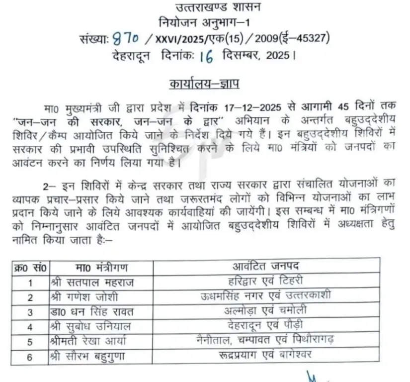 उत्तराखंड सरकार के मंत्री अब धरातल पर जनता के बीच दिखाई देंगे।