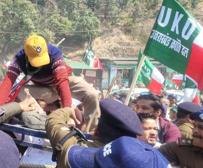 अधिकारियों और सेक्टर मजिस्ट्रेट के कई बार समझाने के बावजूद यूकेडी कार्यकर्ता मांगों पर अड़े रहे। तीन घंटे के लंबे संघर्ष के बाद पुलिस ने बल प्रयोग कर उक्रांद युवा मोर्चा अध्यक्ष आशीष नेगी समेत 40 से 50 कार्यकर्ताओं को गिरफ्तार कर मालसी और मेहलचौरी में बनाई अस्थाई जेल में भिजवाया।