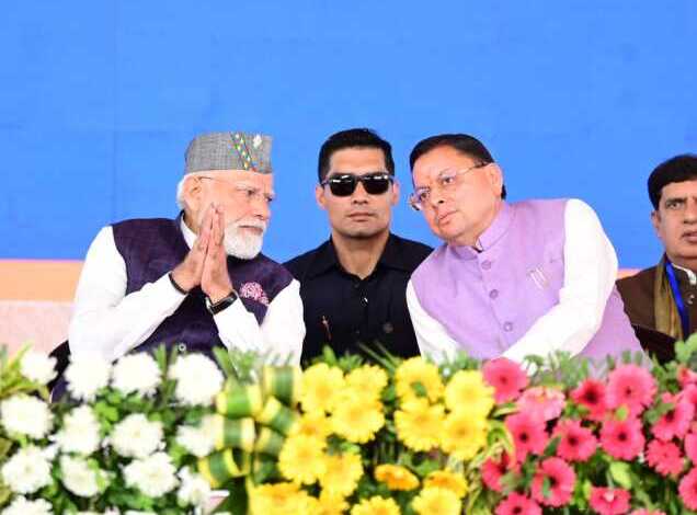 जिस वक्त केंद्रीय मंत्री नितिन गडकरी जनसभा को संबोधित कर रहे थे, उस दौरान मोदी-धामी के बीच किसी विषय पर वार्तालाप हुआ। मुख्यमंत्री की बात को गौर से सुनते हुए प्रधानमंत्री दिखाई दिए।