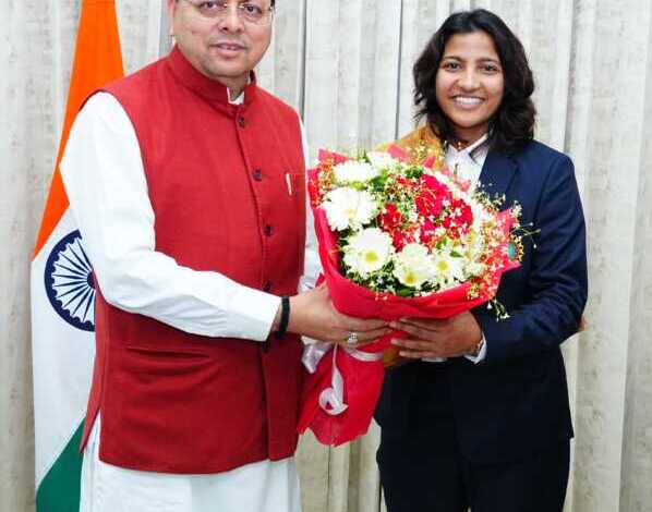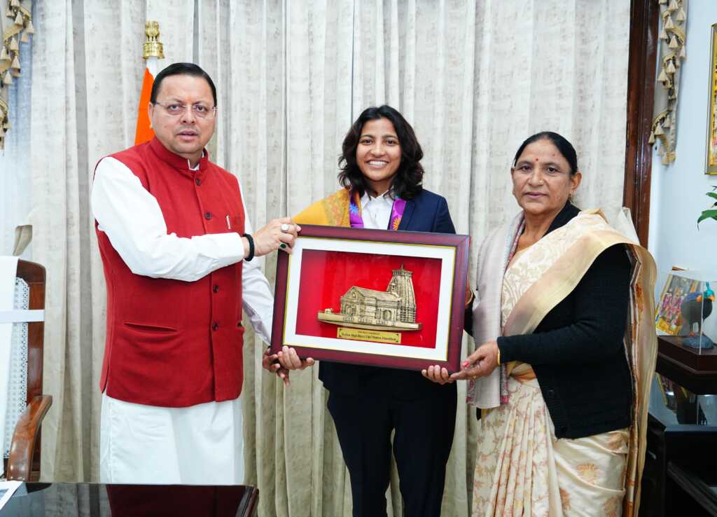 महिला विश्व कप विजेता क्रिकेटर स्नेह राणा ने की मुख्यमंत्री पुष्कर सिंह धामी से शिष्टाचार भेंट