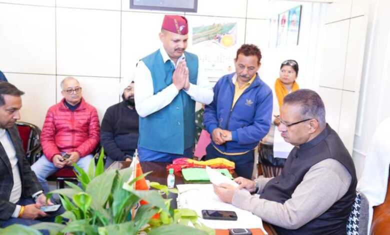 कैंप कार्यालय में जनसुनवाई कार्यक्रम के दौरान लोगों की समस्याएं सुनते कैबिनेट मंत्री गणेश जोशी