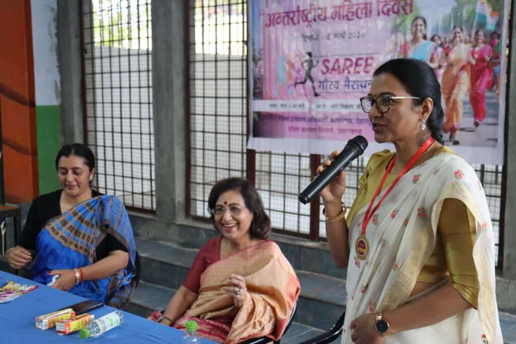 पारम्परिक भारतीय परिधान साड़ी में आयोजित इस विशेष मैराथन में महिलाओं ने बढ़-चढ़कर प्रतिभाग करते हुए उत्साह और ऊर्जा का परिचय दिया।